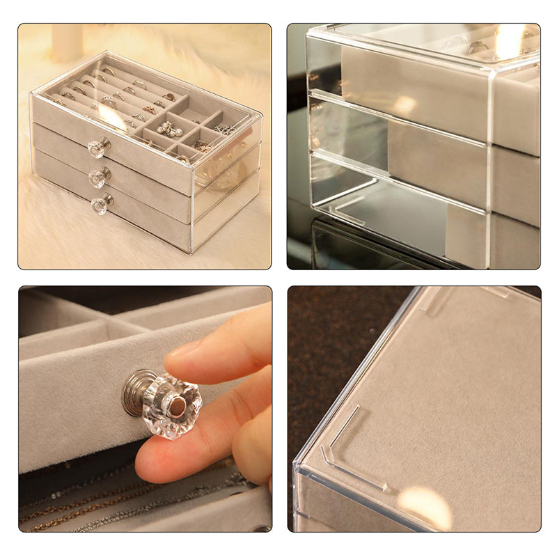 Acrylic Velvet Jewelry Organizer with 3 Drawers Stackable Display Storage Box