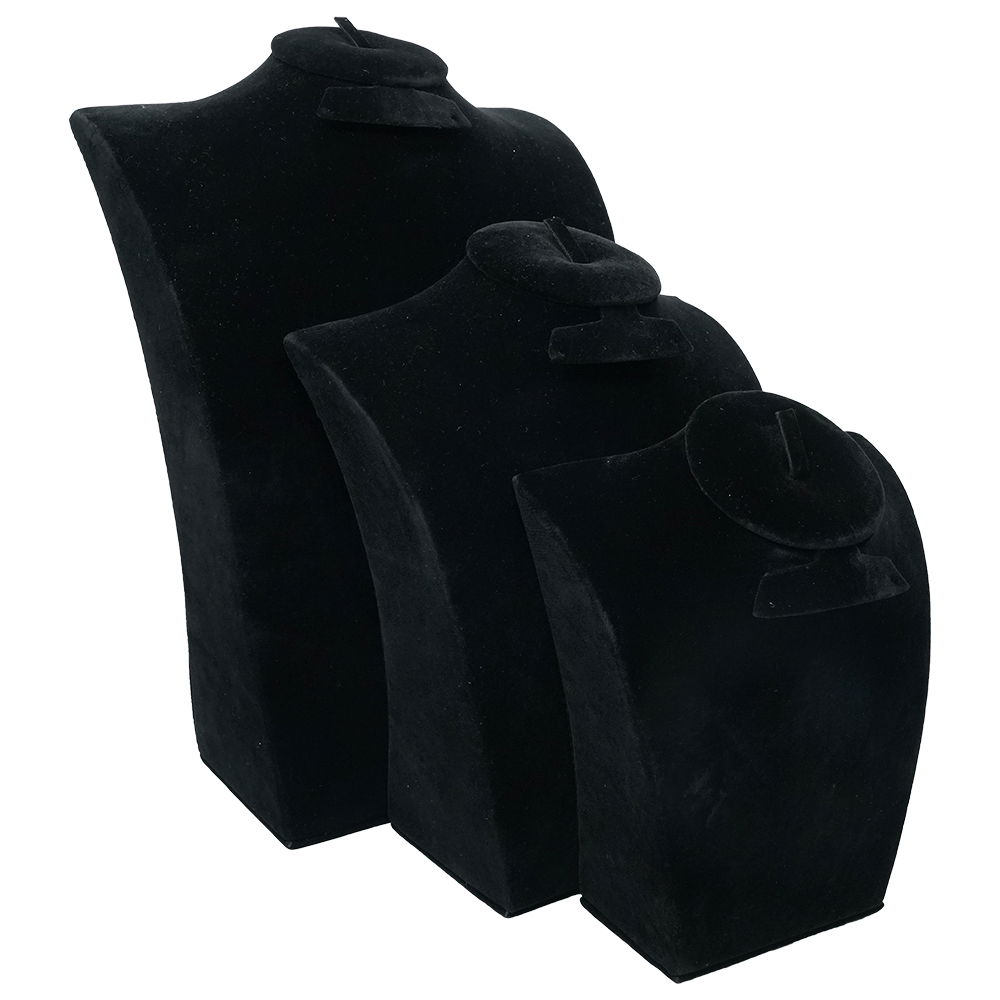OUR VERY OWN, TIMELESS & CLASSIC DESIGN. THESE FANCY BLACK VELVET BUSTS ARE AVAILABLE IN DIFFERENT SIZES PLASTIC CORE FENCY BLACK VELVET EXTERIOR. BRAND THESE BUSTS WITH YOUR LOGO ON THE TOP OF THE PACKER TO MAKE THEM YOUR OWN.