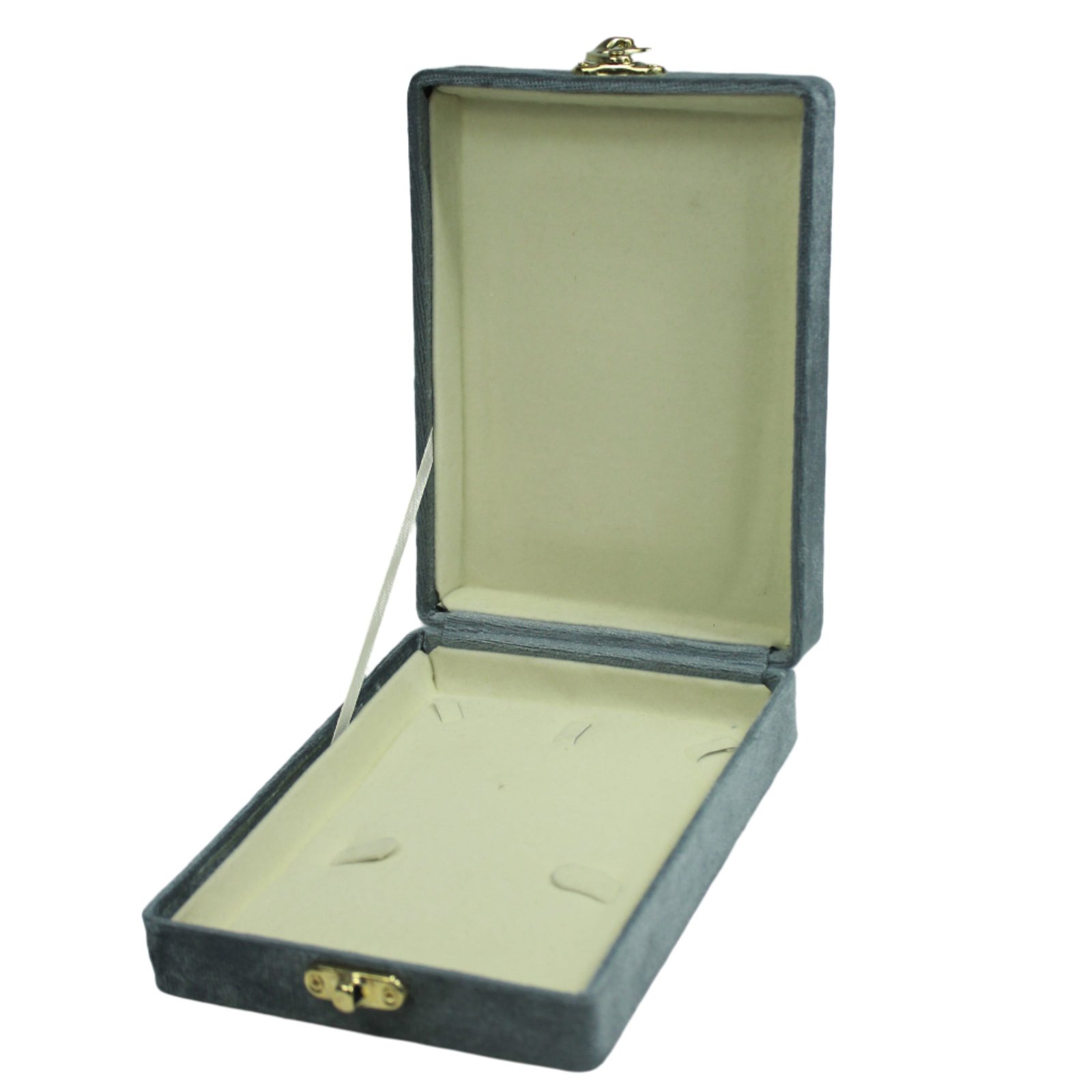 Understated luxury at its finest — our Grey Velvet Jewelry Box is designed for those who appreciate modern elegance. With its smooth grey velvet exterior and soft off-white interior, this box provides a beautiful, neutral-toned canvas that enhances the look of any jewelry piece.
