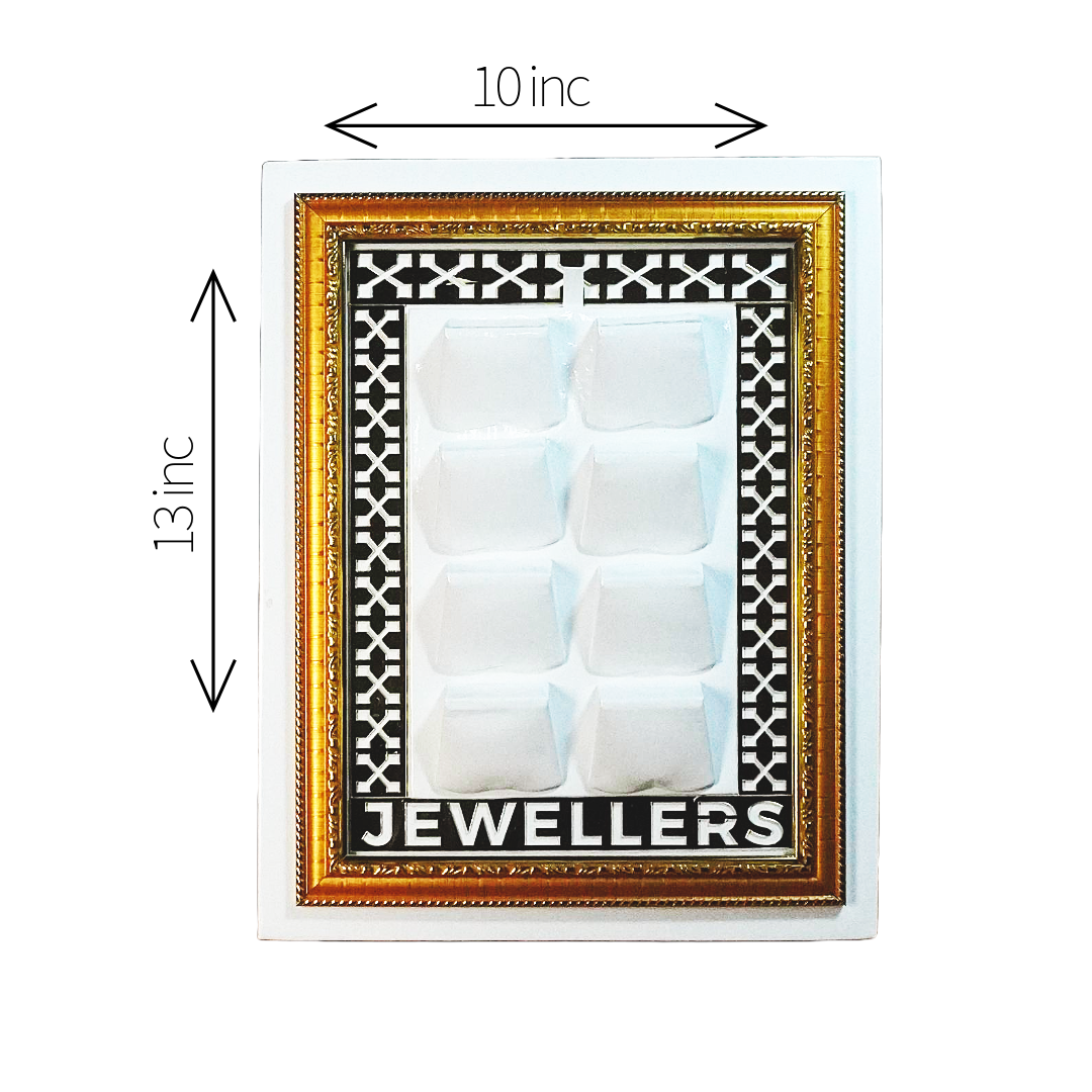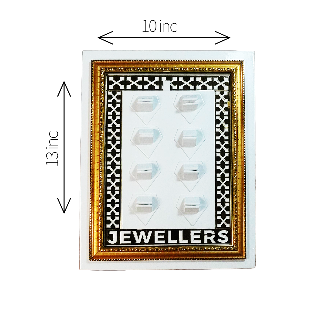 Elevate your jewelry display with the Golden Edge Elite Aura Tray — a perfect fusion of elegance and practicality. Crafted with a refined white patterned base and accentuated by a golden border, this tray adds a luxurious aura to any retail counter, vanity, or gift presentation.