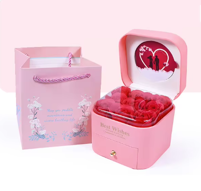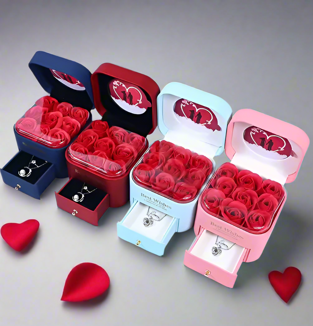 Luxury Gift Box Ring Earring Necklaces Organizer Jewelry Gift Packaging Romantic Eternal Rose Flower